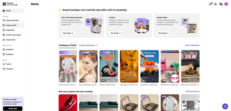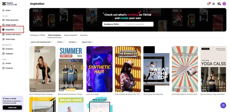 The first step in effortless video creation is selecting an AI-powered tool that suits your needs. With platforms like CapCut Commerce Pro, you can start with a pre-designed template. This eliminates the hassle of manually organizing clips and ensures a smooth, engaging flow. Open Capcut Commerce Pro's Inspirations section.